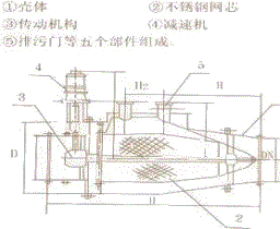 电动旋转反冲式二次滤网结构形式如附图1,它主要由:⑴壳体⑵不锈钢网芯⑶传动机构⑷减速机⑸排污门等五个部件组成。 工作原理:经过拦污栅和一次滤网过滤的循环水中仍含有不少悬浮物和泥沙等杂质,经过循环水泵进入二次滤网再过滤,当水中悬浮物和泥沙等杂质在滤网处附到一定数量时,滤网的内外水压差增大到控制系统规定数值时(一般为500mmH2O柱),启动控制系统动用、排污机构投入工作,将附着物排出二次滤网,待内处压差恢复到正常时(一般≤400mmH2O柱)控制机构关闭、循环往复,从而完成过滤排污工作过程。